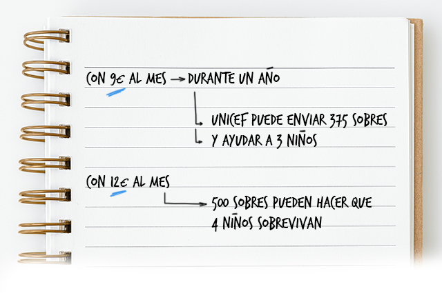 Así que nos hemos unido a UNICEF y a su programa Hazte socio para enviar sobres de alimento terapéutico (a.k.a. “el alimento mágico”) a los niños y niñas que más lo necesitan. Cada sobre contiene las calorías, proteínas, vitaminas y minerales necesarios para que, con tres al día, un niño pueda salir adelante en 6 semanas.